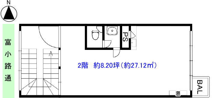 賃 料 | 88,000円(税別) | 面積 | 約8.20坪(約27.12㎡) |